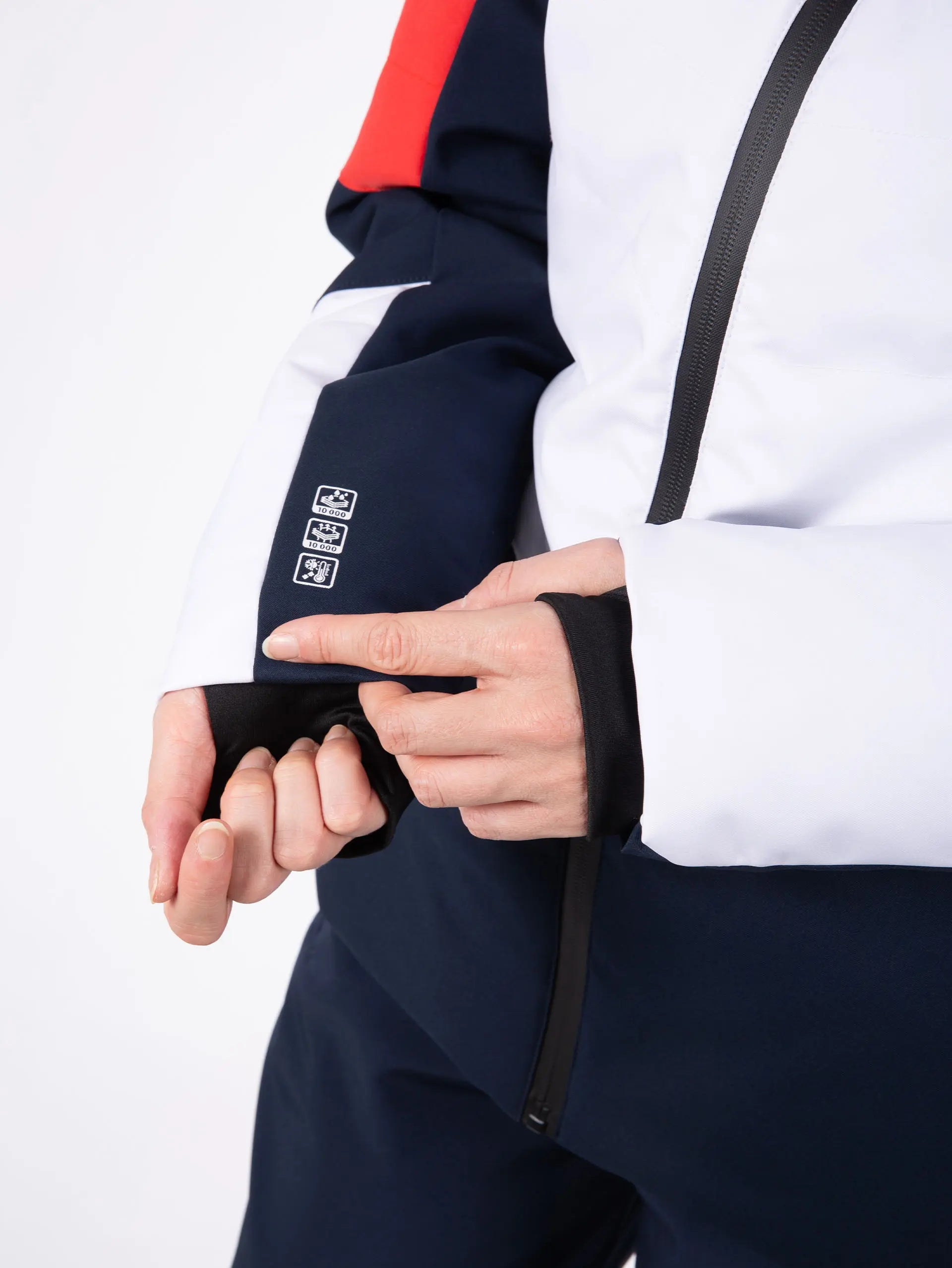 The SANDI women's ski jacket is specially designed to keep you warm and dry on the slopes. With its 15k/15k membrane, it provides optimal protection against snow and wind while ensuring efficient moisture evacuation.