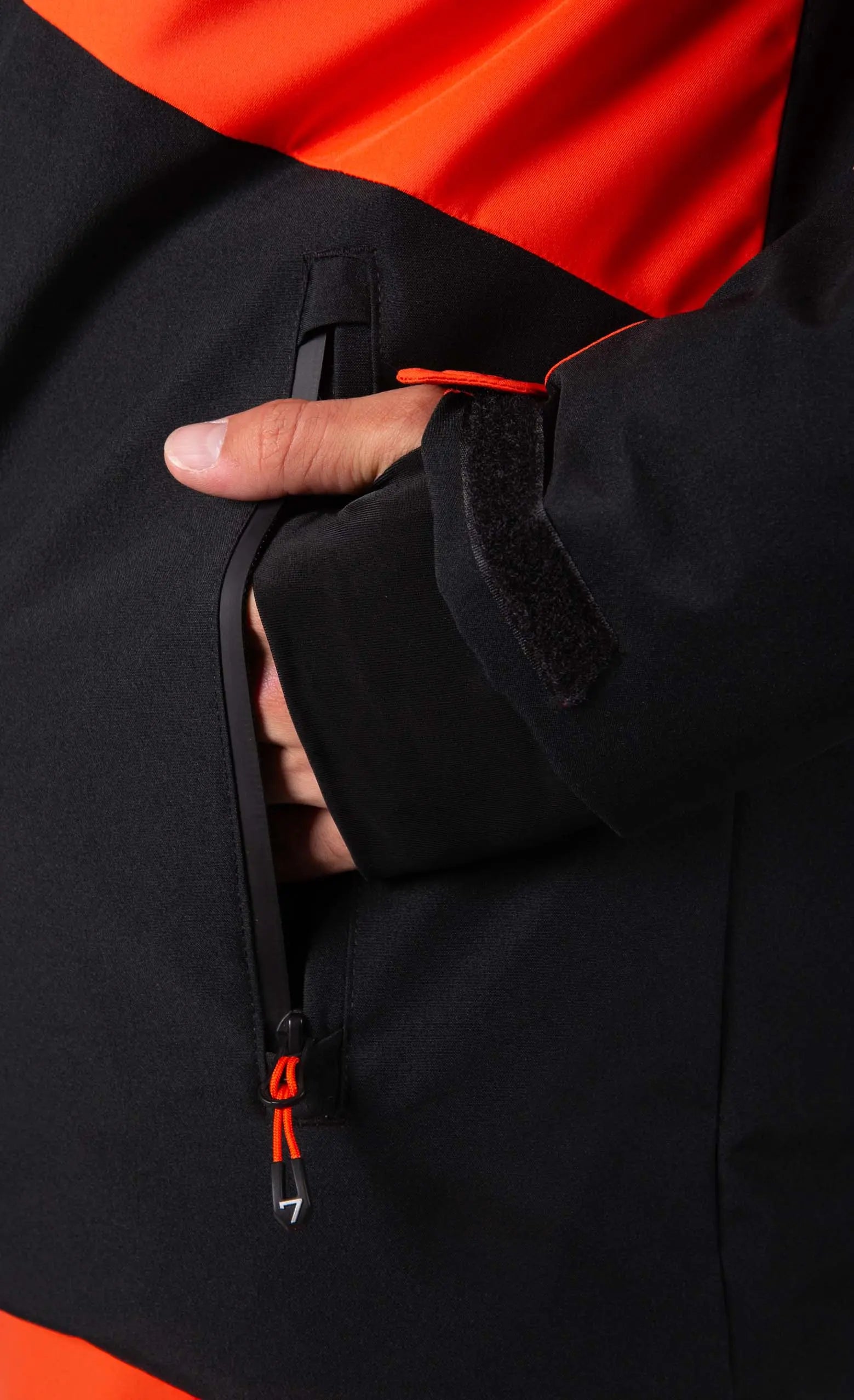 External closures: YKK zip, 2 hand pockets, 1 ski pass pocket
